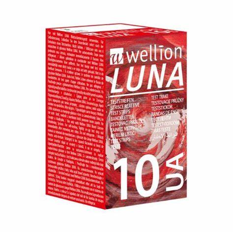 Тест-смужки для вимірювання рівня сечової кислоти в капілярній крові. Сумісні з глюкометрами Wellion LUNA Duo та Trio. Забезпечують результат за 15 секунд при об’ємі зразка лише 1 мкл. Упаковка містить 10 смужок.